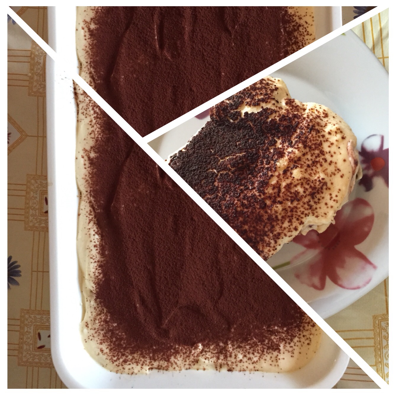 Inzuppate leggermente i savoiardi nel caffè  e create un primo strato nella teglia. Poi coprite con un primo strato di crema. Ripetete l’operazione mettendo il secondo strato di biscotti inzuppati e aggiungete un secondo strato di crema.